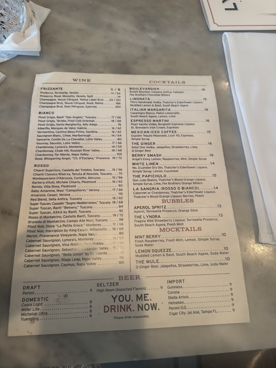 Welcome to Lynora's Boca, a gem located in the heart of Boca Raton, offering a delightful modern Italian dining experience. This restaurant prides itself on a diverse menu that seamlessly blends traditional dishes with a contemporary twist. Start your culinary journey with their warm Minestrone soup or the vibrant Grilled Wedge Salad, perfect for lunch. Indulge in delectable appetizers like Arancino Di Riso, featuring crispy rice balls with bolognese sauce, or the fresh Burrata drizzled in pesto.